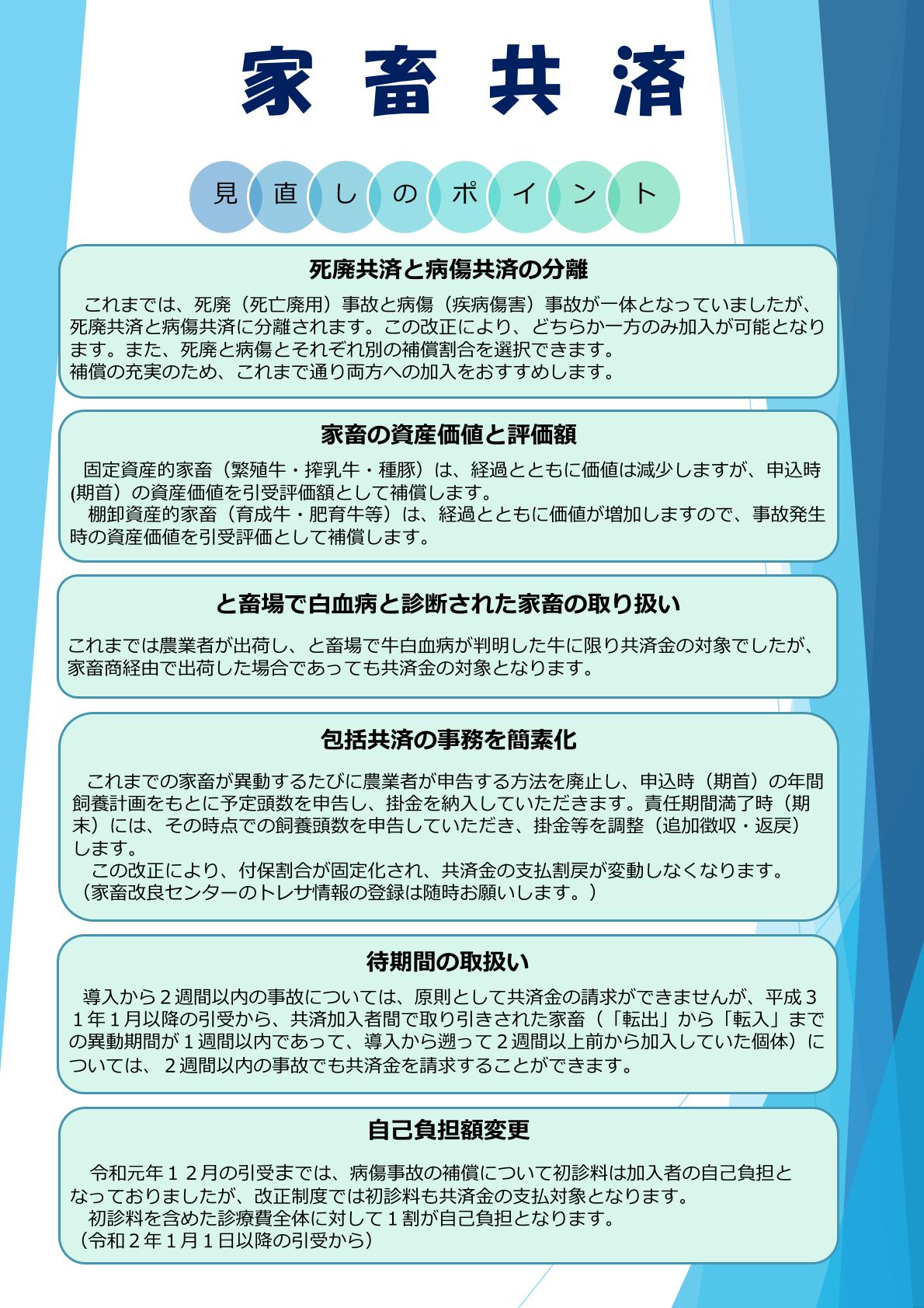 家畜共済は、対象となる加入家畜が死亡・廃用・疾病および傷害によって、損害が生じたときに共済金を支払う事業です。